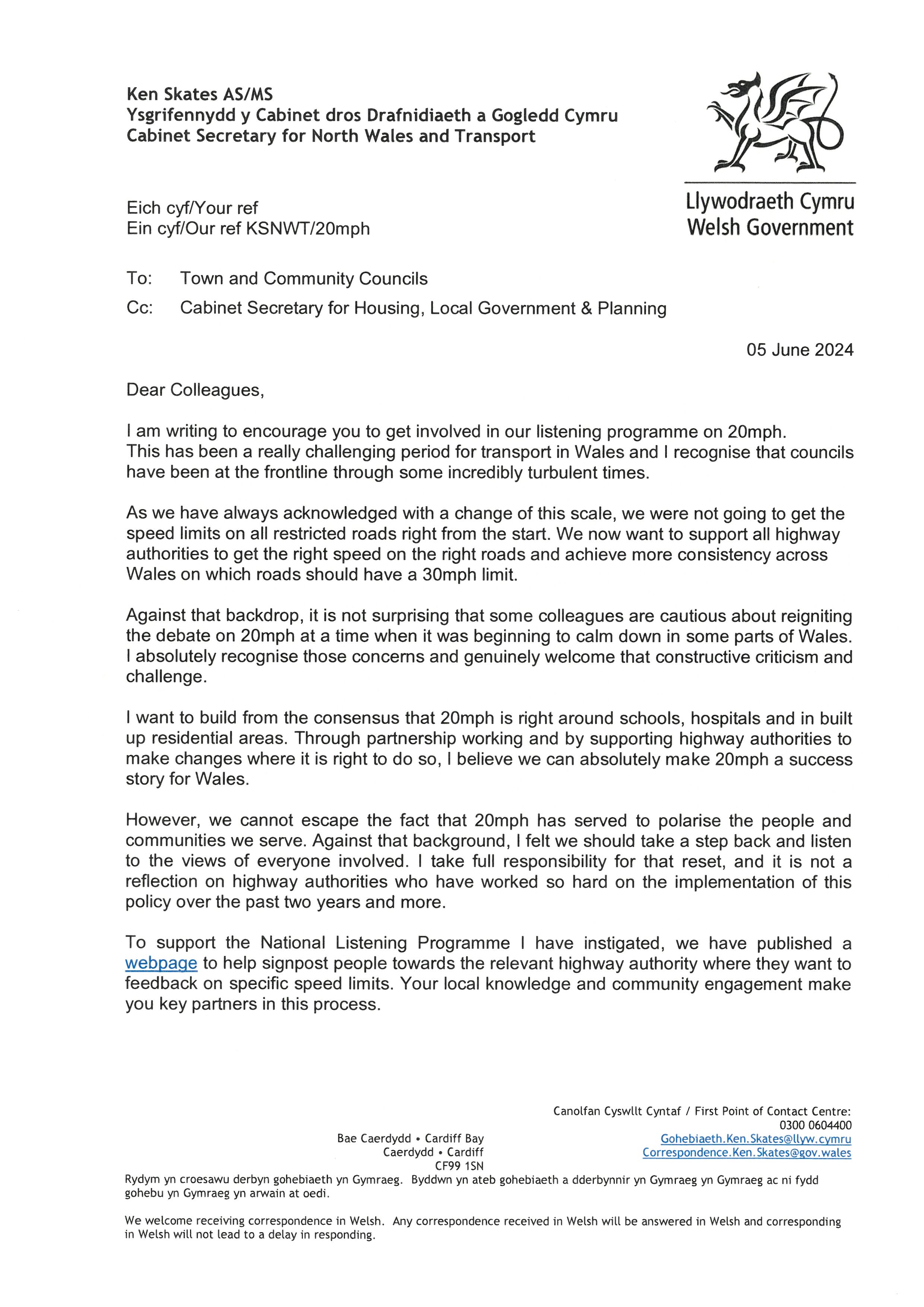 “The Welsh Government has set up a website where changes [supporting/objecting to the current 20mph default limit] can be suggested [by Welsh residents]: traffic@powys.gov.uk. All suggestions must include reasons for a change.”